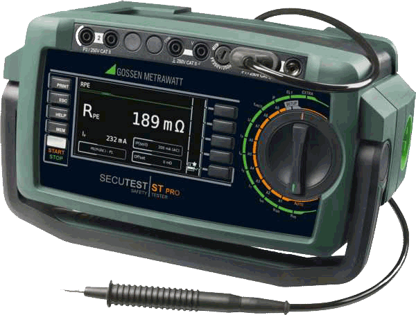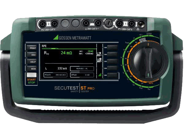 A SECUTEST ST PRO gép és készülék vizsgáló minden mérési és ellenőrzési funkciót biztosít az elektromos orvosi eszközök, és hegesztőberendezések érintésvédelmének ellenőrzéséhez – előre definiált és programozható tesztsorozatokkal, amelyek az EN 50699/EN 50678,. VDE 0701-0702), IEC/EN 62353 (VDE 0751) és IEC/EN 60974-4 (VDE 0544-4).vizsgálati szabványok szerint szükségesek.
