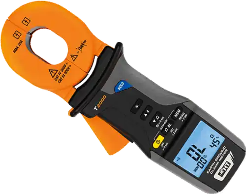 A HTItalia T2000 foldelési ellenállásmérő lakatfogó a földelés megbontása nélkül, hurokellenállás-mérés elv alapján mér földelési ellenállást, ill. ezen kívül 20 A-ig (szivárgó) áram mérésre is alkalmas max. 0,1 mA felbontással. A földelési ellenállás méréshez riasztási határérték állítható be.